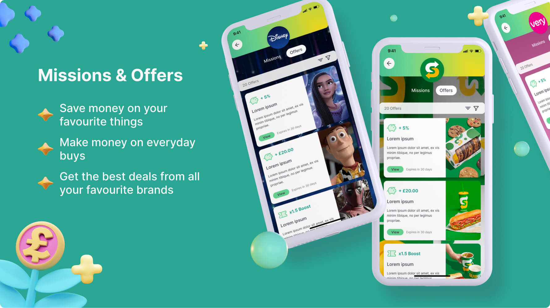 Creating concept and branding for a rewards app associated with one of the UK’s largest retail groups. High level of personalisation, gamification, a wide ecosystem of brands and partners, and much more.