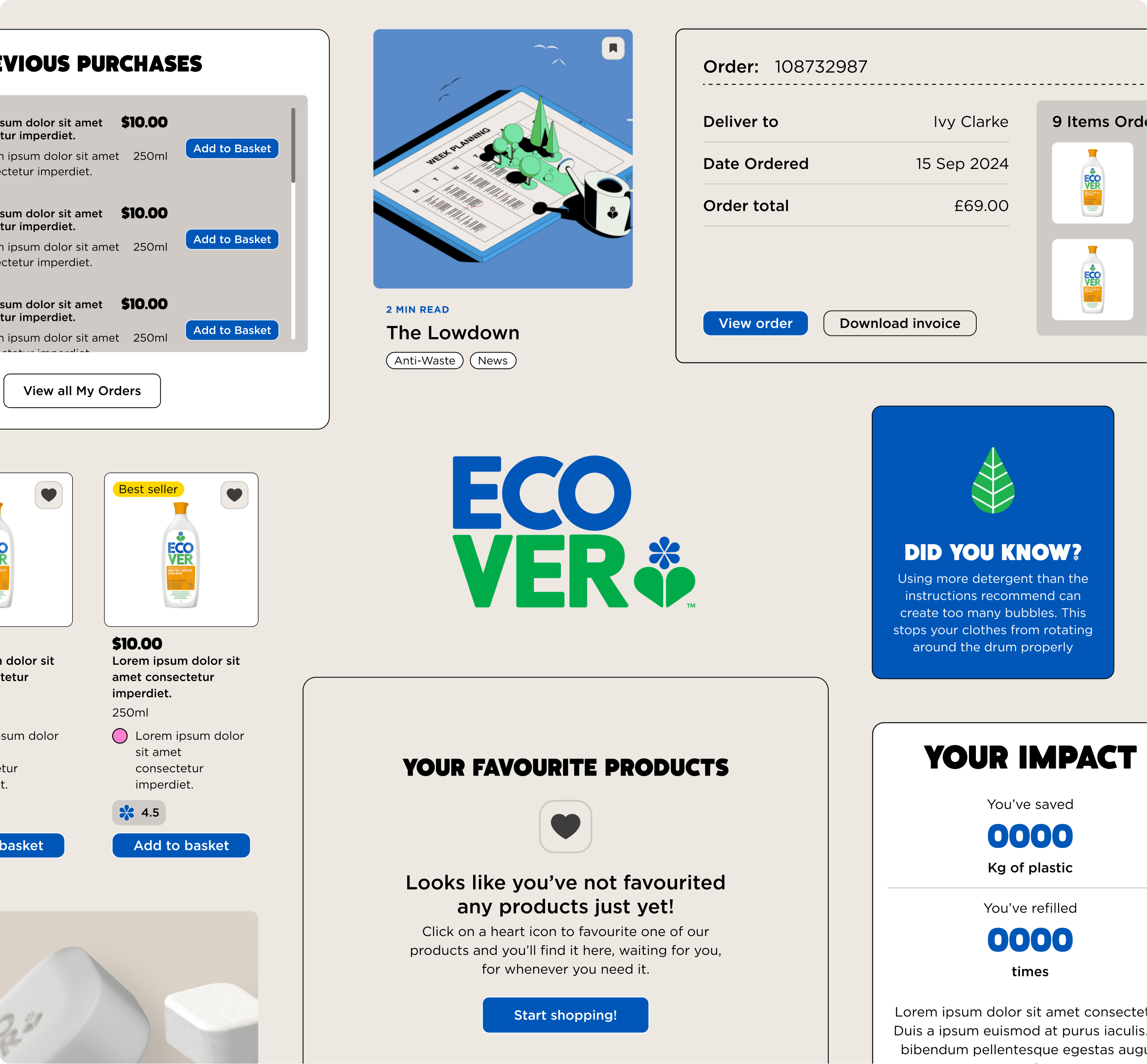 The project required a balance of creative sensitivity and systematic thinking — adapting conceptual designs into a scalable, modular e-commerce platform that could support Ecover long term.