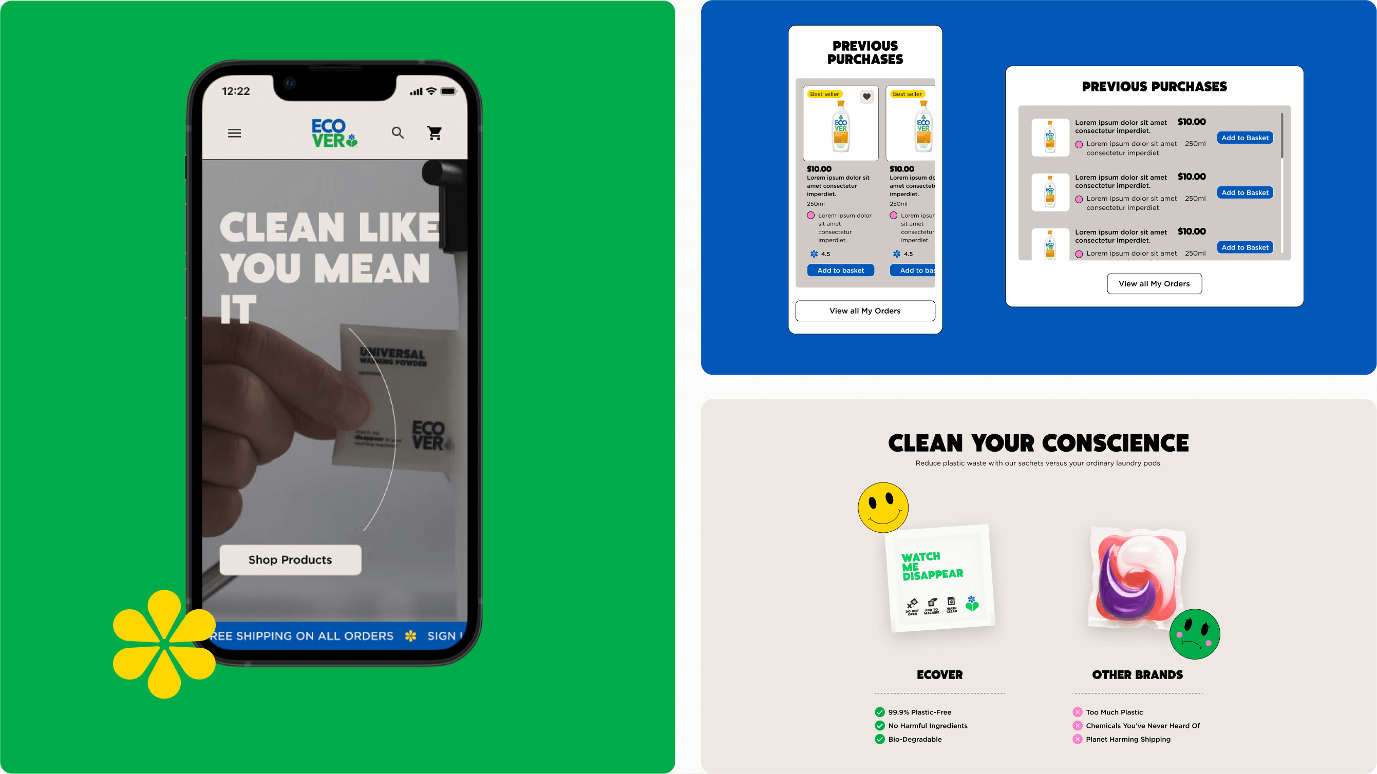 Ecover is a pioneering eco-friendly cleaning and personal care brand with a strong sustainability ethos and established creative direction. I worked as the UI/UX designer on the redesign and launch of their new global e-commerce website.